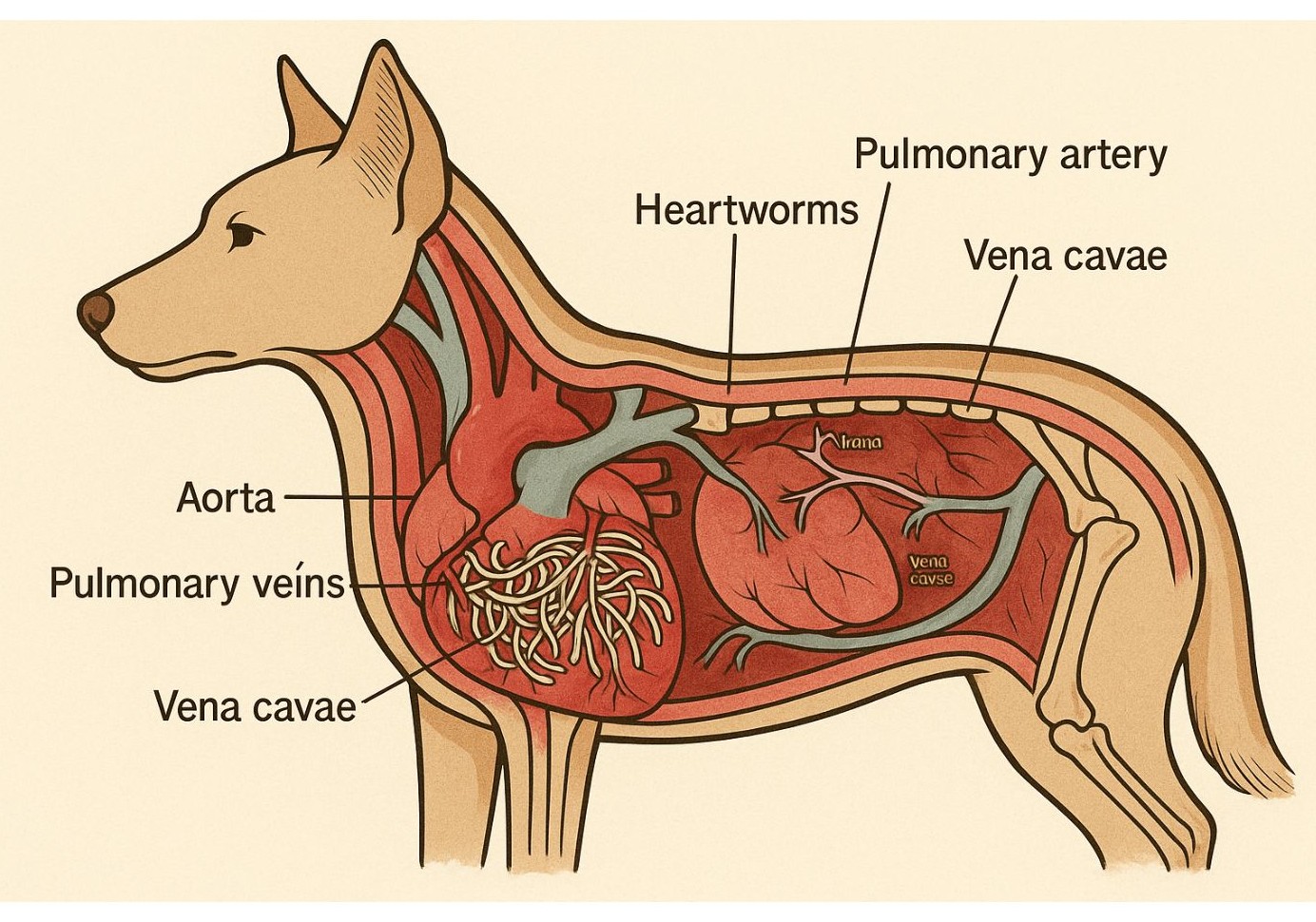 In dogs, signs of heartworm disease can range from coughing, fatigue, and weight loss to difficulty breathing and a swollen abdomen (caused by fluid accumulation from heart failure). Canine heartworm infection can also lead to a life-threatening complication called “caval syndrome” (a form of liver failure); without prompt surgical intervention, this condition usually causes death.